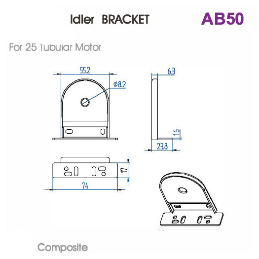 Composite Used for 35 mm tubular motors. Dimensions not explicitly stated.
